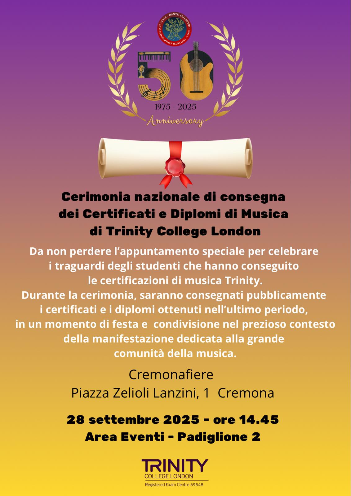 Cerimonia di consegna dei Certificati e Diplomi di Musica e di Trinity College London